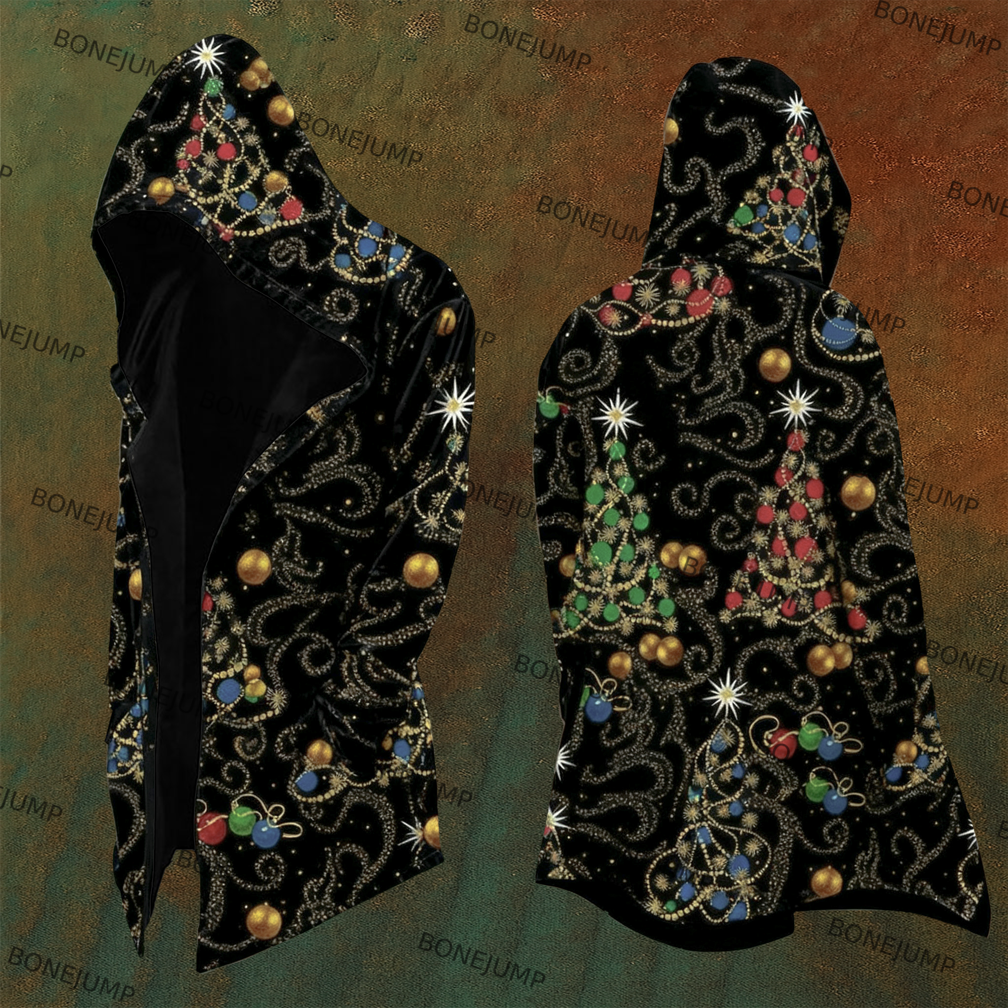 Christmas Tree String Lights All-Over Printed Hooded Jacket