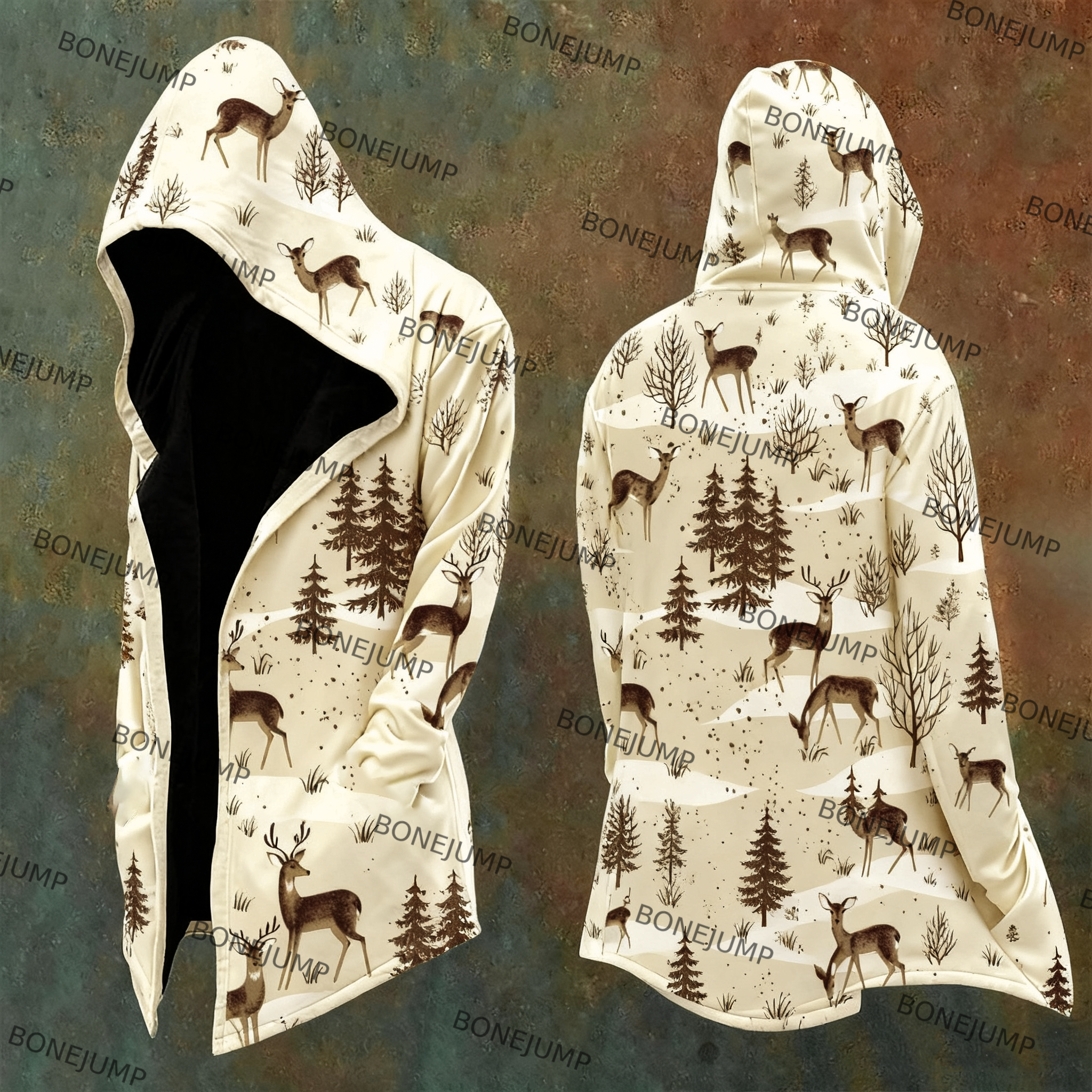 Forest Christmas Reindeer All-Over Printed Hooded Jacket