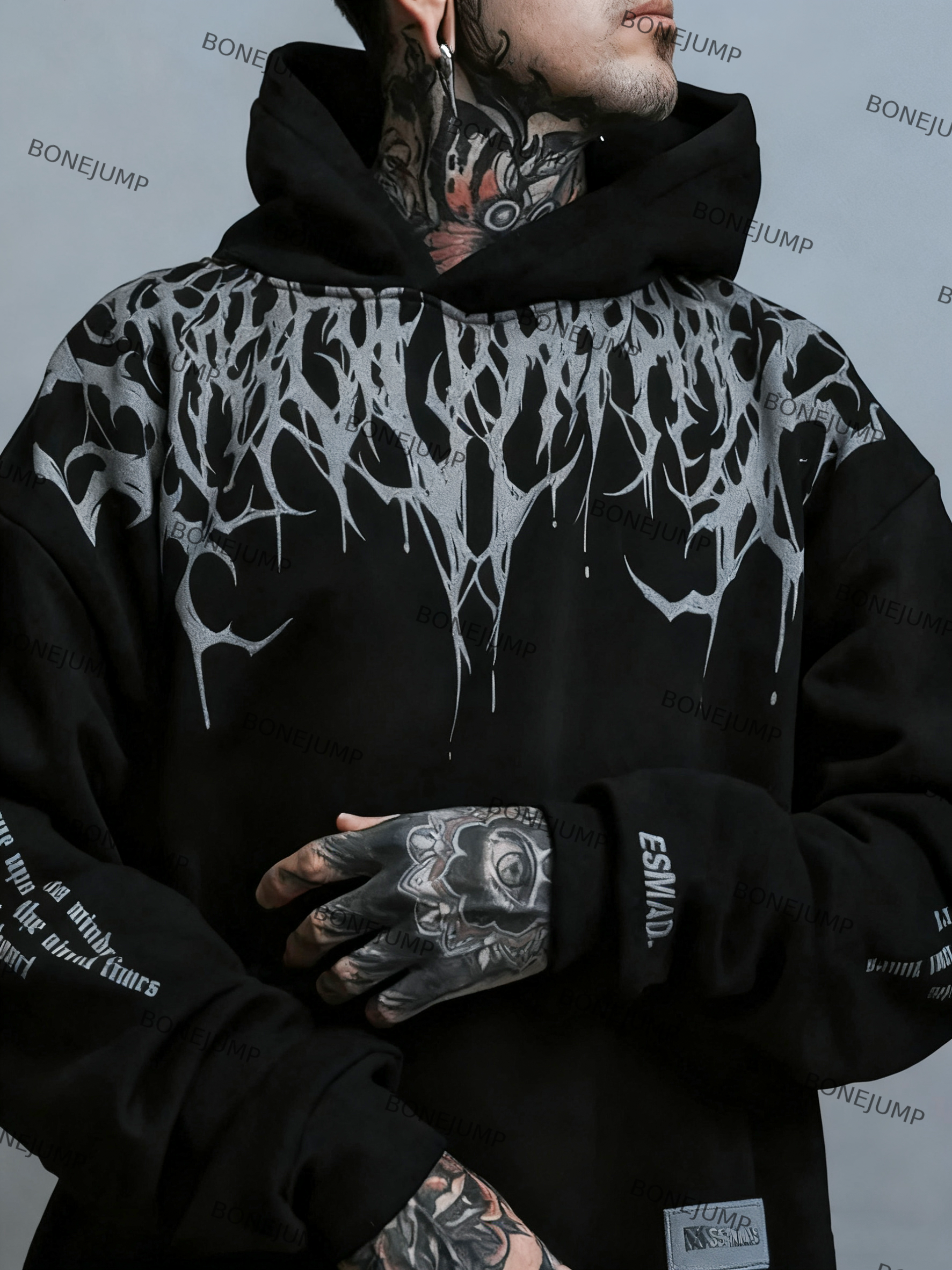 Gothic Gray Blood Printed Hoodie