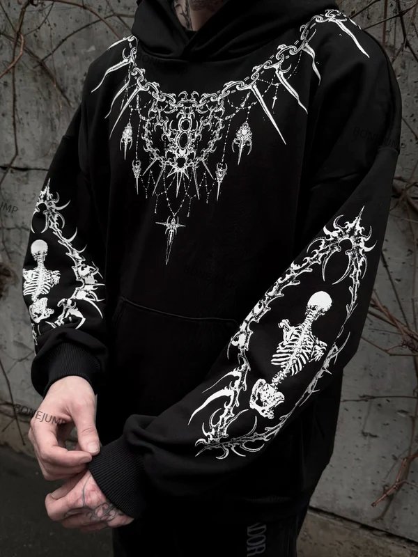 Men’s Gothic Skeleton Street Printed Hoodie