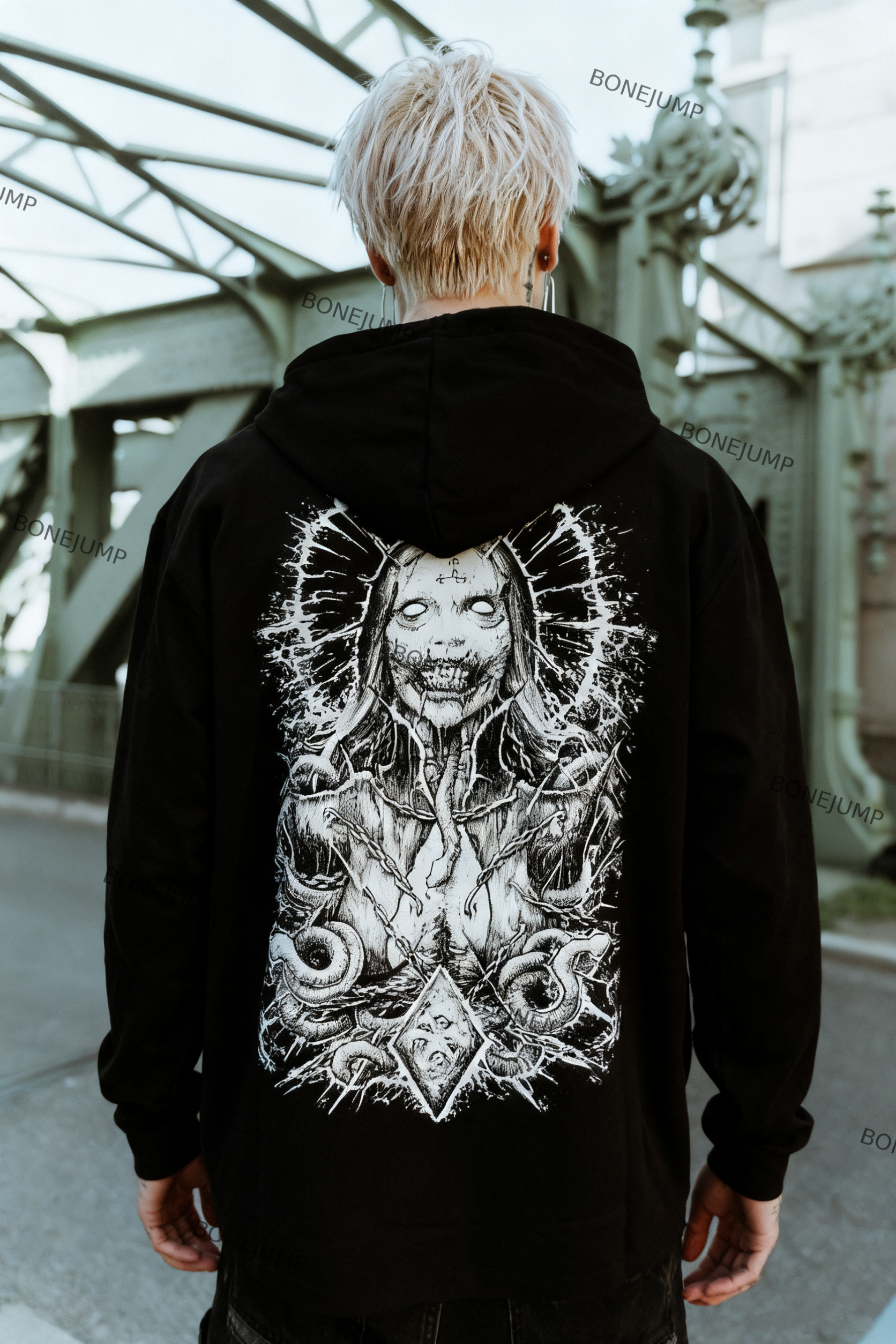 Men's Dark Monster Horror Weird Printed Hoodie