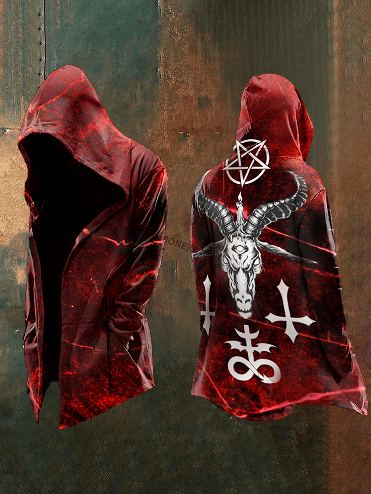 Men's Sheep Head Printed Casual Hooded Jacket