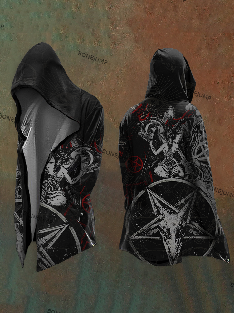 Men's Satanic Devil Goat Digital 3D Printed Casual Hooded Jacket
