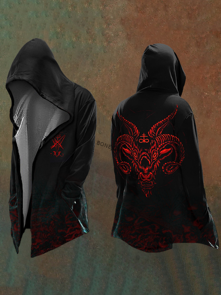Men's Satanic Blood Devil Digital 3D Printed Casual Hooded Jacket