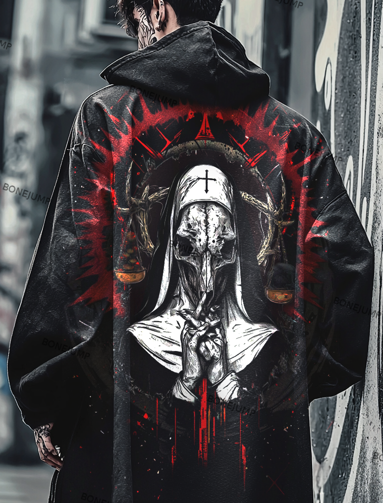 Men's Gothic Satanic Devil Nun Street Style Digital 3D Printed Casual Hooded Jacket