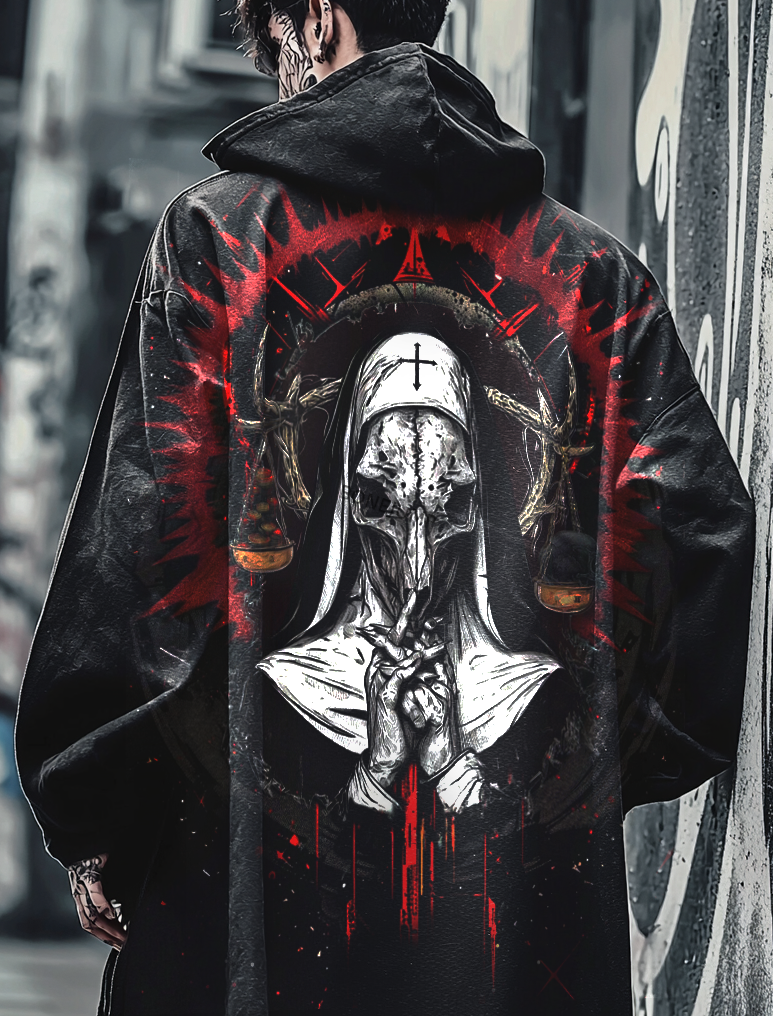 Men's Gothic Satanic Devil Nun Street Style Digital 3D Printed Casual Hooded Jacket