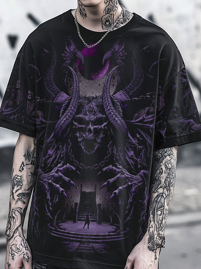 Bonejump Art Satanic Dark Mystical Devil King Oversized Unisex Casual T-shirt
