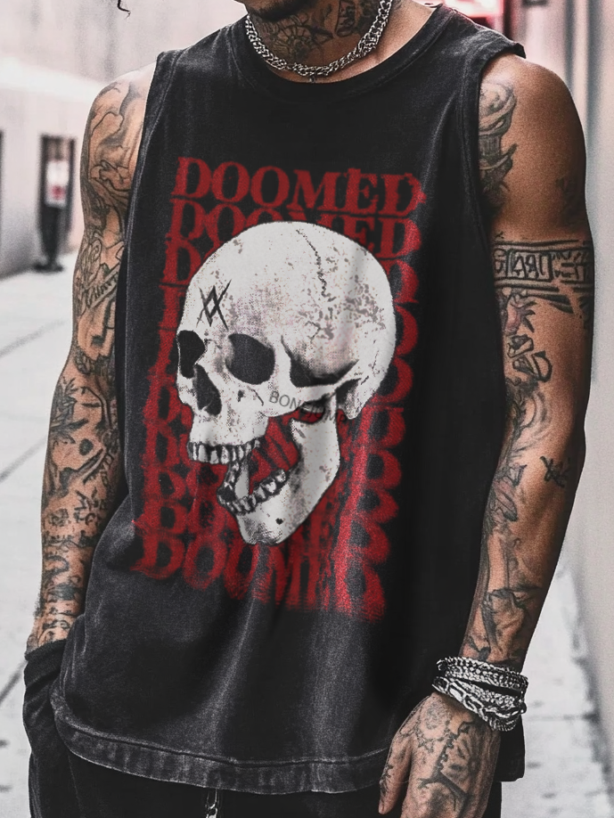 Bonejump Art Satanic Rock Skull Acid Wash Casual Vest