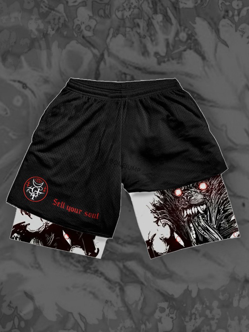 Bonejump Art Satanic Sell Your Soul 2 In 1 Sports Shorts