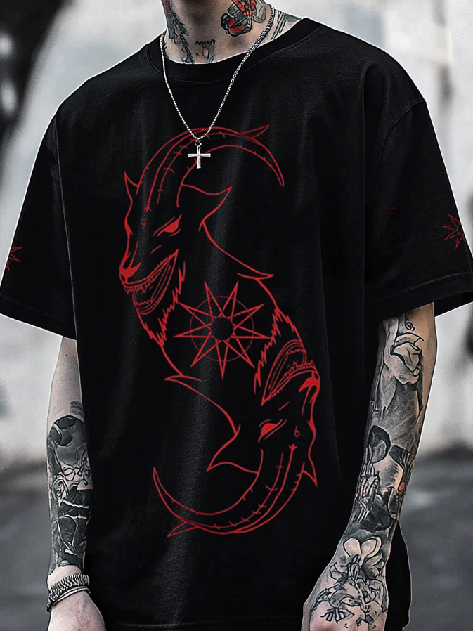 Bonejump Art Satanic Skull Goat Demon Dark Oversized Unisex Casual T-shirt