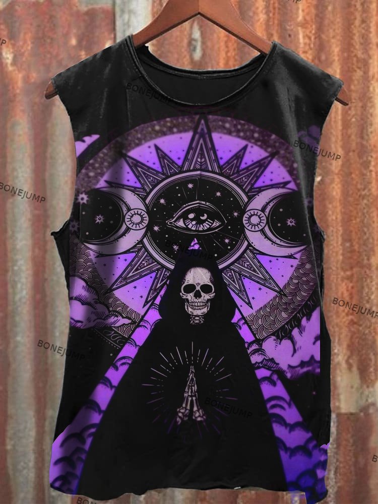 Unisex Vintage Symbol Skull Print Tank Top