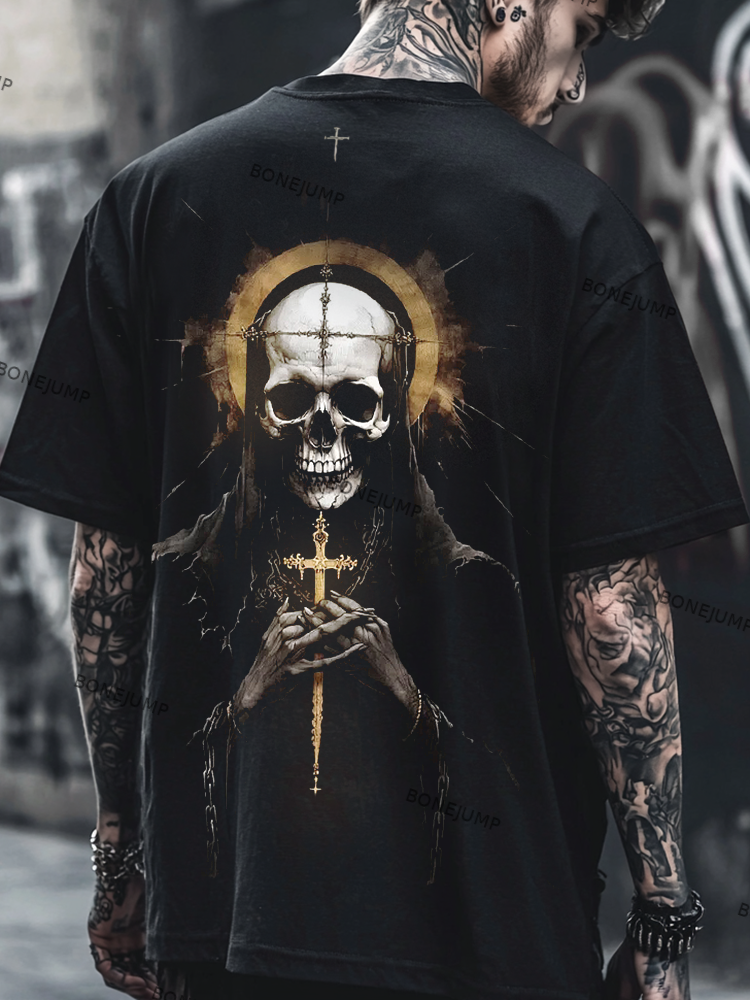 Satanic Skull Devil Dark Golden Demon Digital 3D Printed Unisex Casual T-shirt