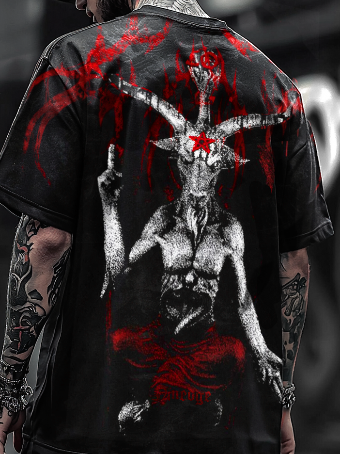 Bonejump Art Satanic Goat Devil Baphomet Oversized Unisex Casual T-shirt