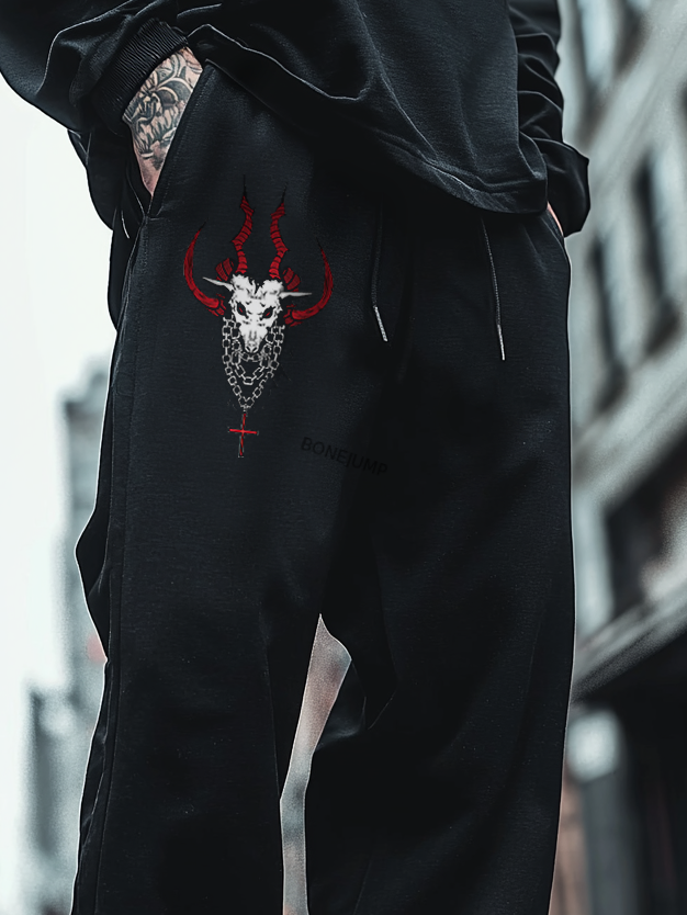 Art Print Track Pants Satanic Skull Goat Totem Unisex Casual Sweatpants