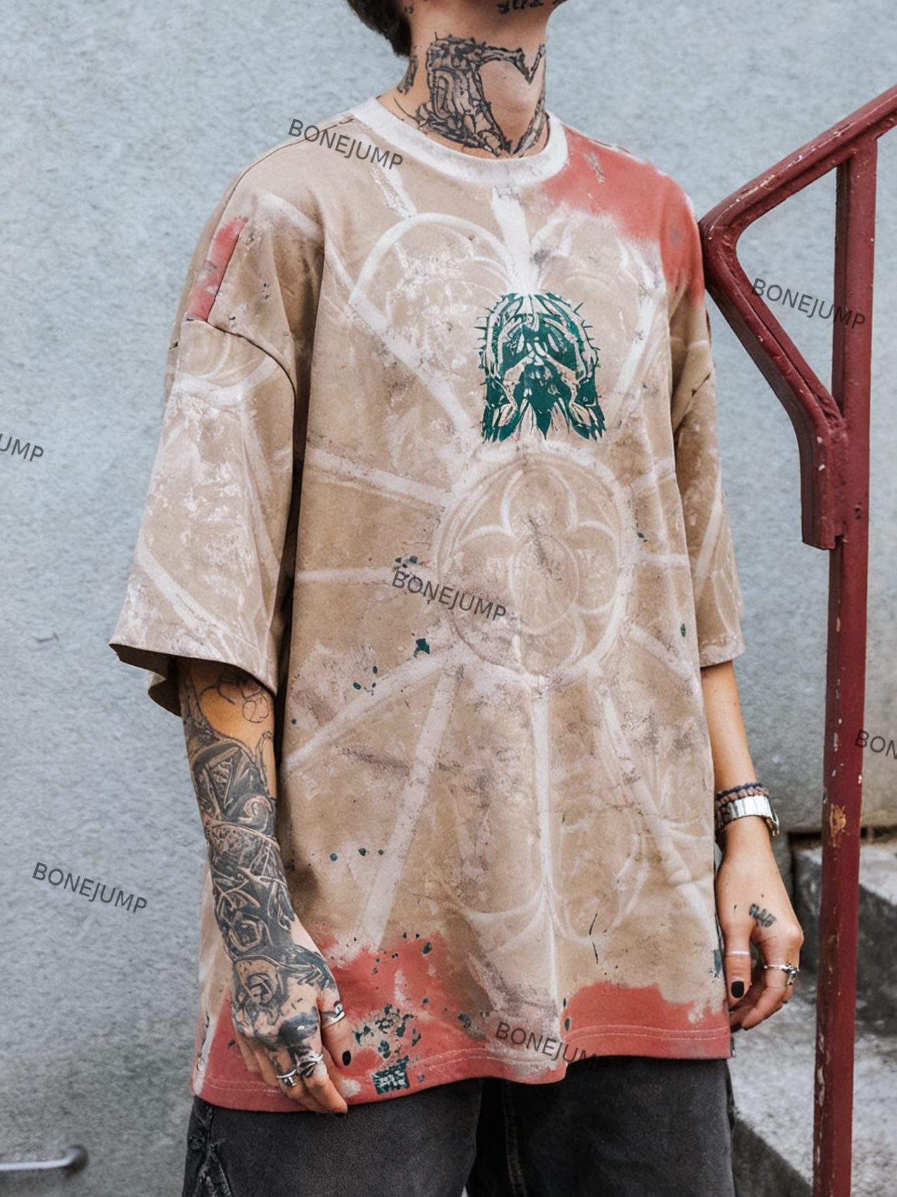 Vintage Church Ombre Printed Street-Style T-Shirt