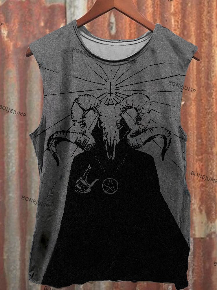 Vintage Satan Print Casual Sleeveless T-Shirt